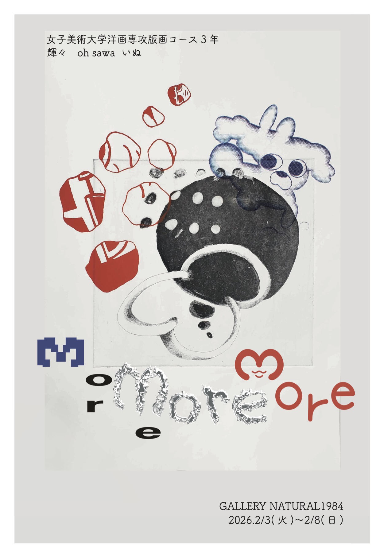 女子美術大学洋画専攻版画コース 3年生の3人によります、それぞれの個性が光る展示です!